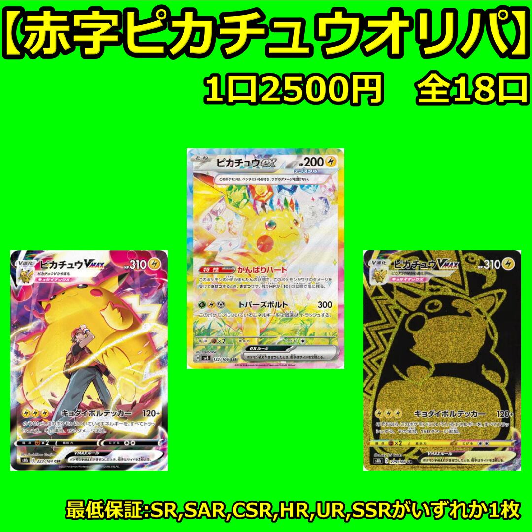 今回は大人気のピカチュウexに加えて高騰中のが当たるオリパをご用意させて頂きました!