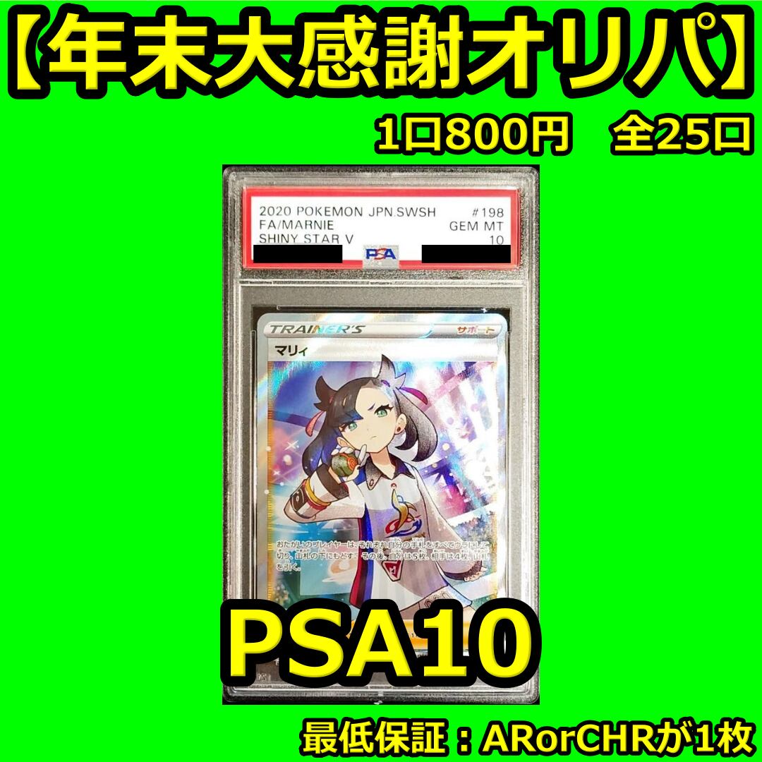 今回は年末ということで皆様に感謝の気持ちを込めて1口800円、全25口でマリィのPSA10が当たるオリパをご用意させて頂きました!