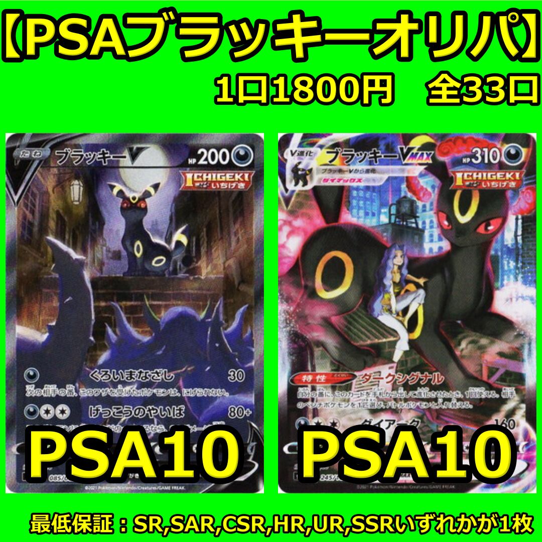 今回はなんと大人気ポケモンブラッキーPSA10が当たるオリパをご用意させて頂きました!